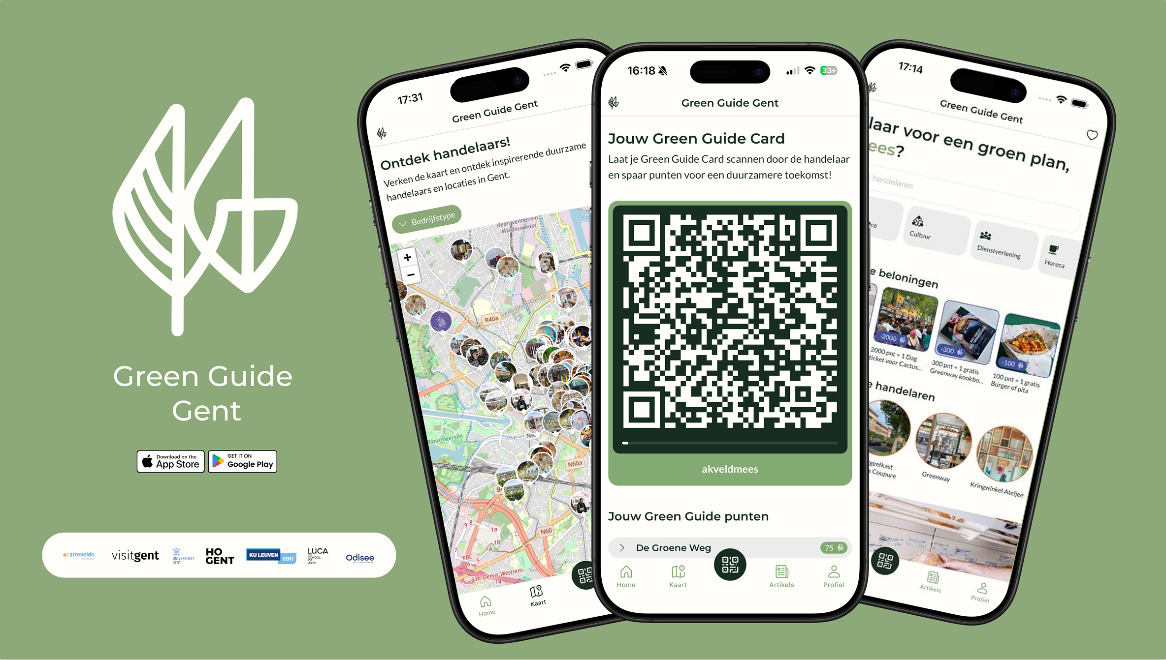 Green Guide Gent is a mobile app that makes sustainable initiatives visible and encourages users to act locally and consciously through an interactive platform.