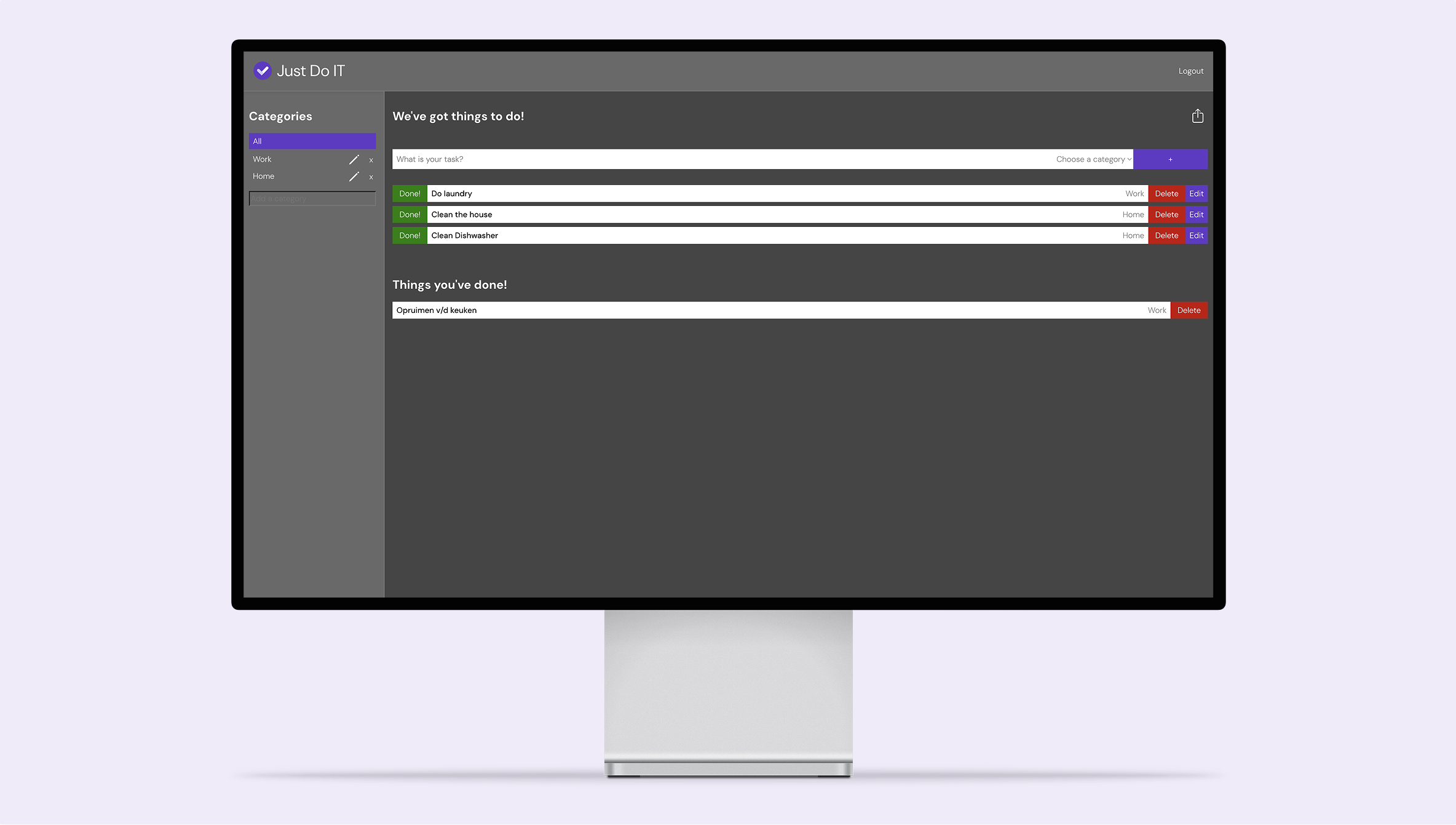 This is a web-based to-do application that allows users to manage their personal tasks and categories. Each user has access to their own set of todos after authentication.